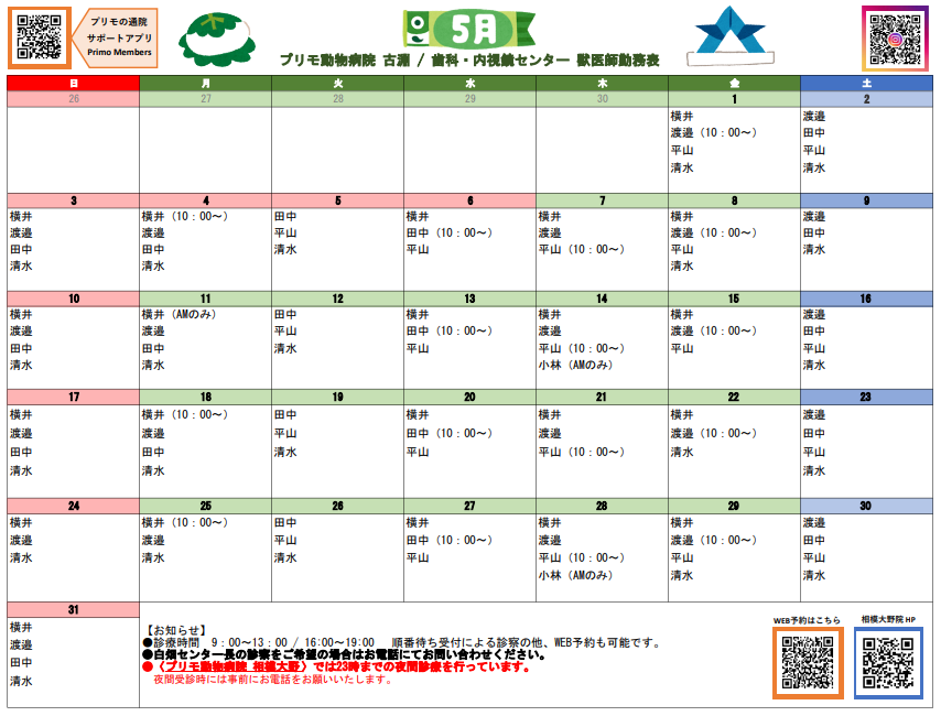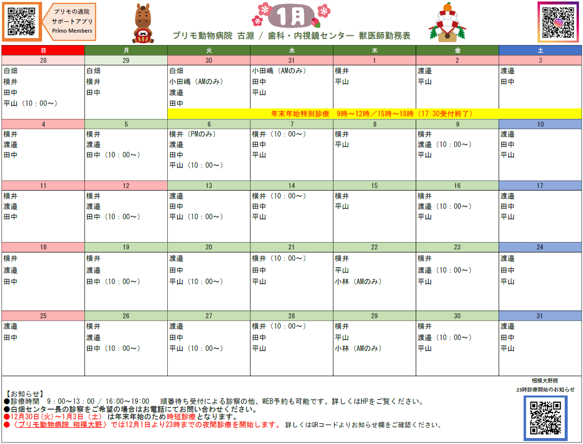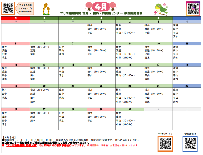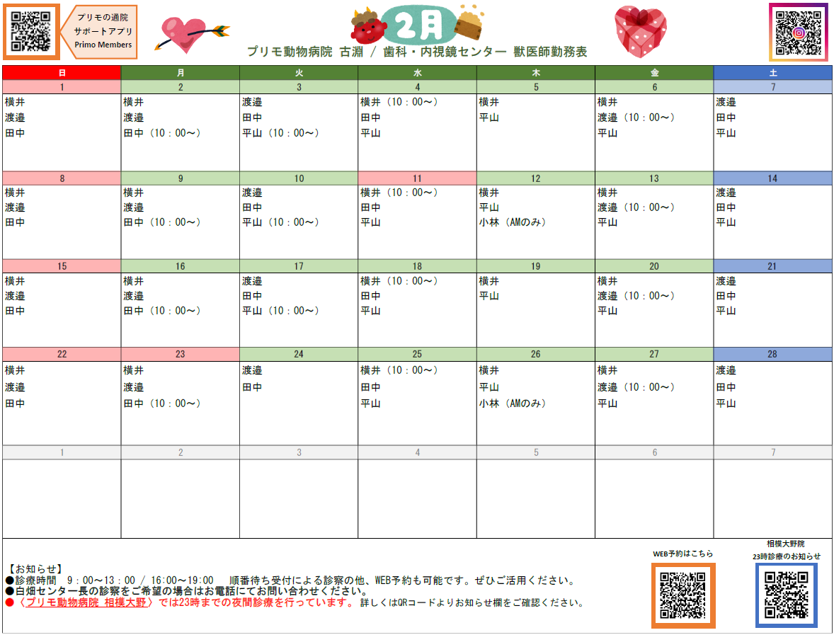 当院は「プリモ動物病院 古淵」です。ご予約の際はご注意ください。