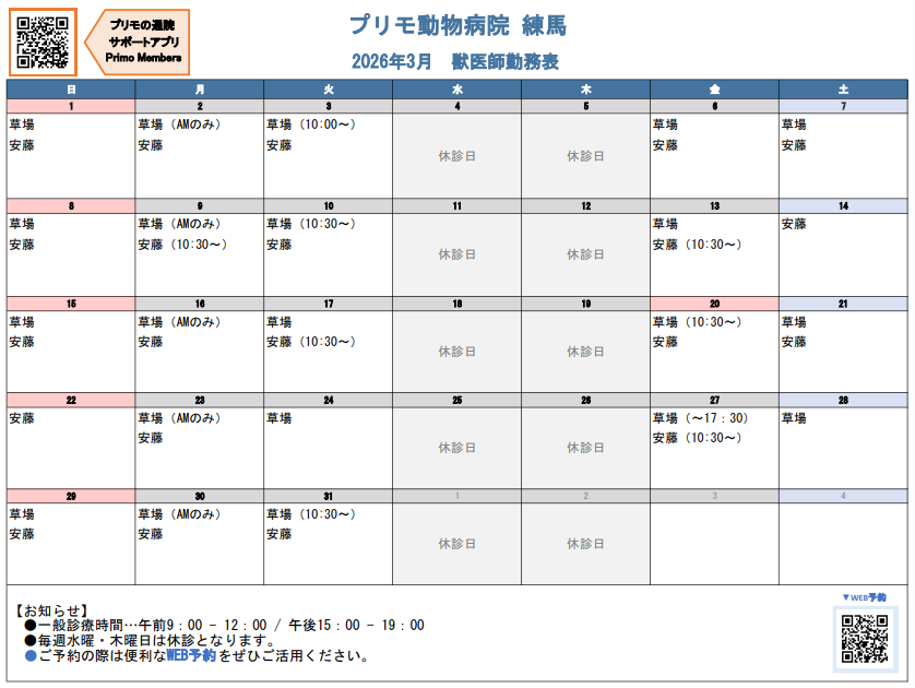 Doctor timetable 勤務医表