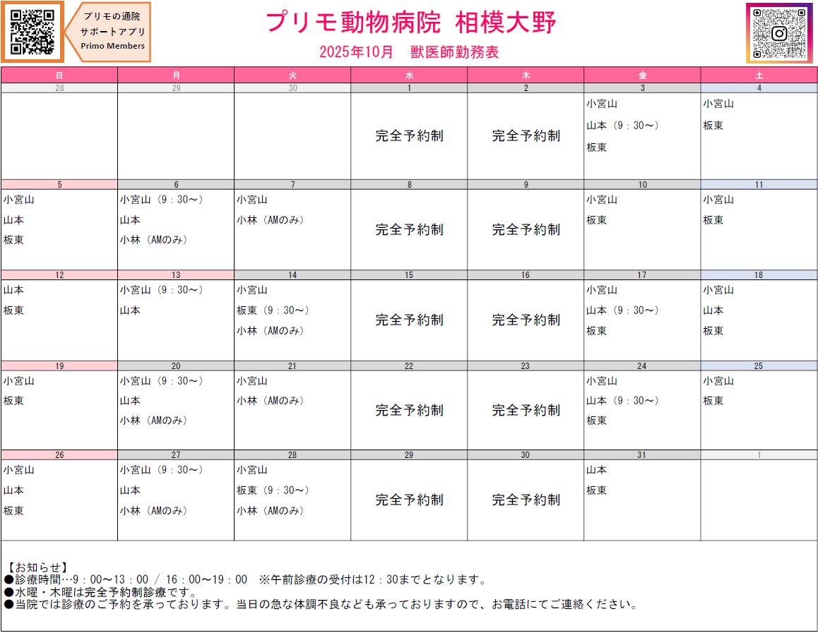 診療時間 月 火 水 木 金 土 日 祝 9:00~13:00
