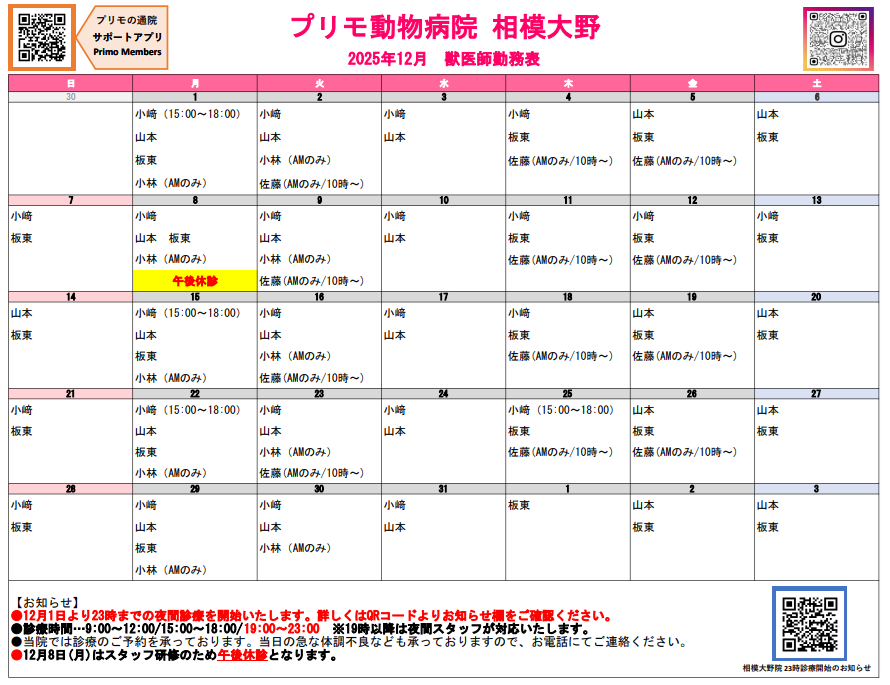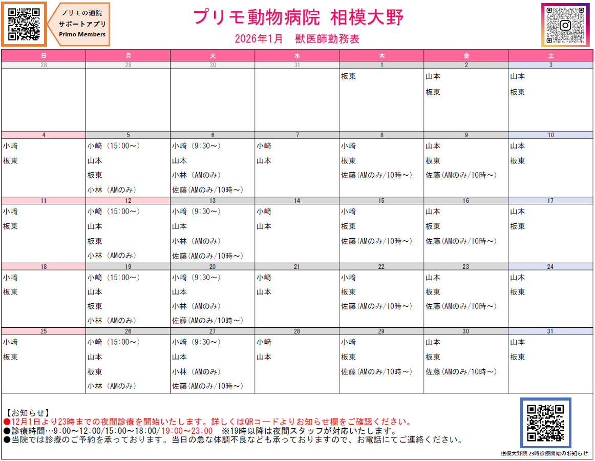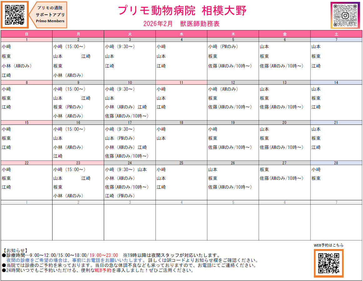 獣医師指名は17:30まで、ワクチン接種は18:00までとなります。