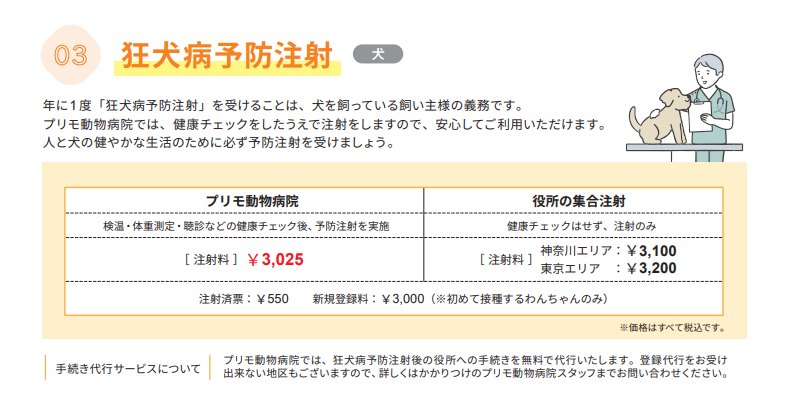 プリモ動物病院では、狂犬病予防注射後の役所への手続きを無料で代行いたします。