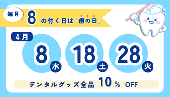 当院では、毎月“8”の付く日は「歯の日としてデンタルグッズを全品10%OFFにて販売しております!