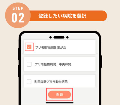 - 登録したい病院を選択し、チェックマークを表示させます。(複数病院登録可能です)