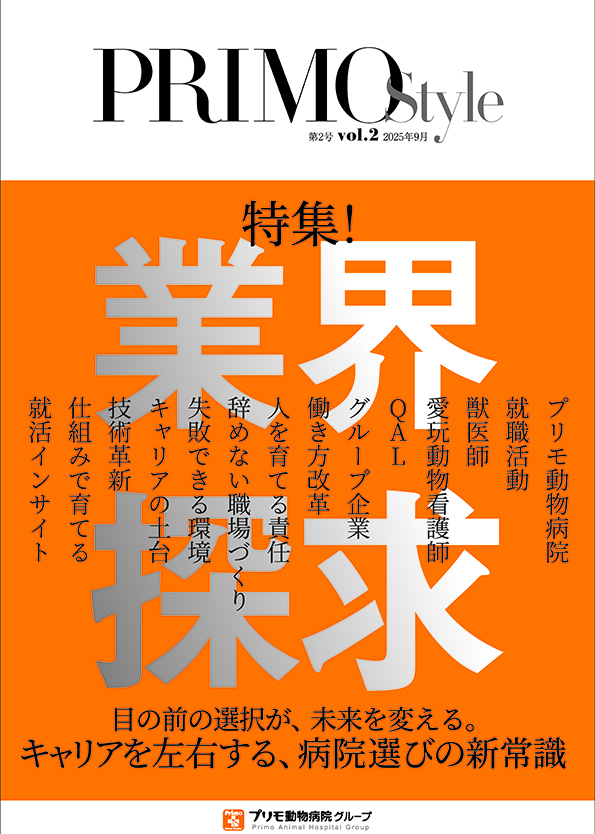 『Primo Style』は、獣医師・愛玩動物看護師を目指す学生のみなさんの「就活の疑問」を解決するガイドブックです。